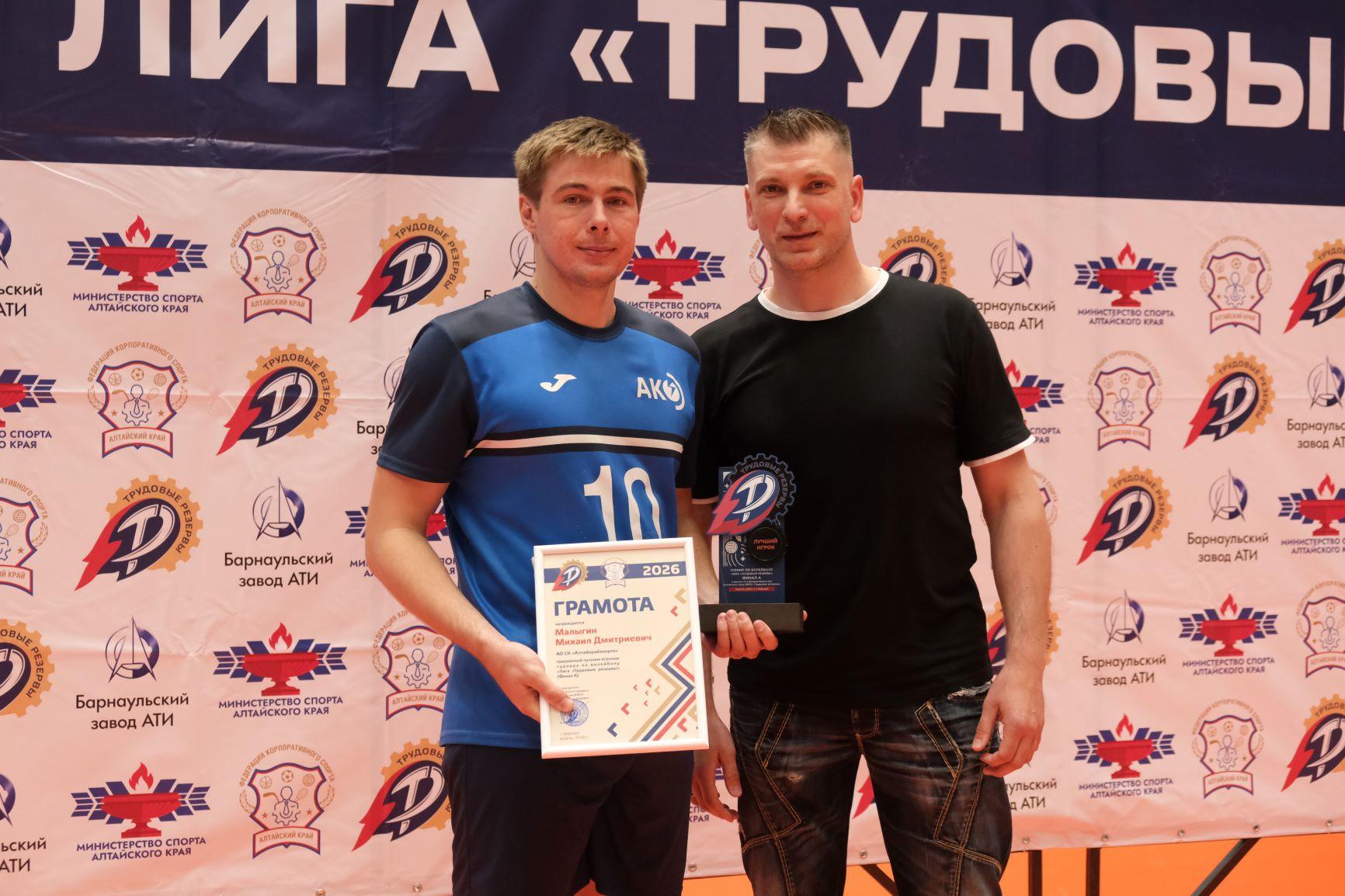 Особого признания удостоился Михаил Малыгин, который стал одним из лучших игроков турнира. Награду ему вручил легендарный барнаульский волейболист XXI века, мастер спорта международного класса Филипп Воронков.