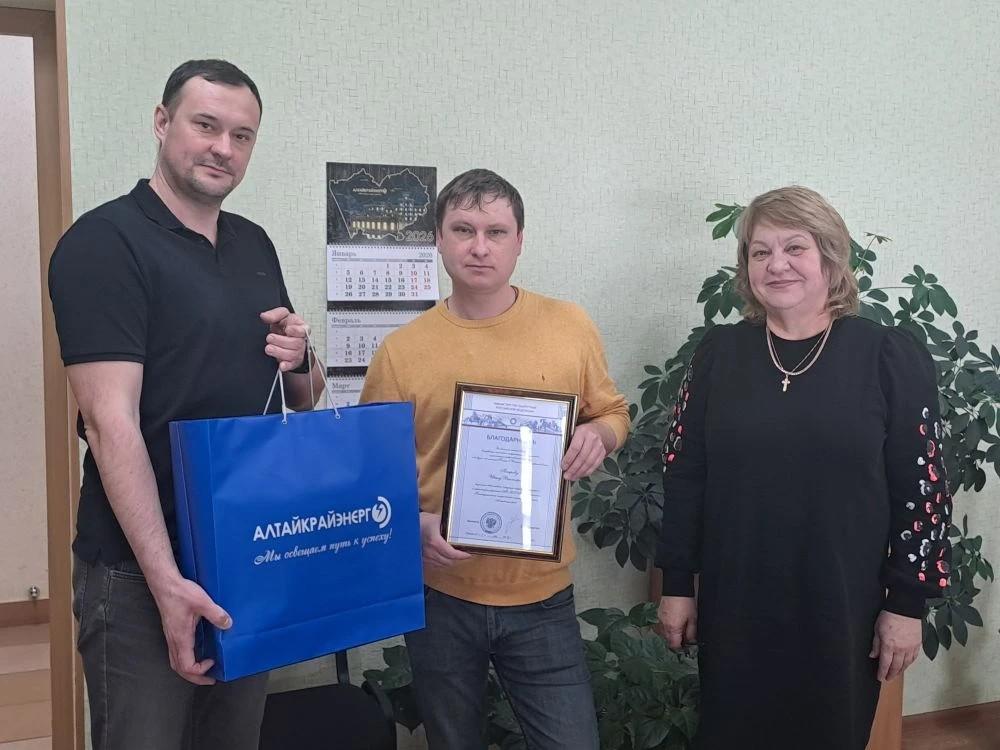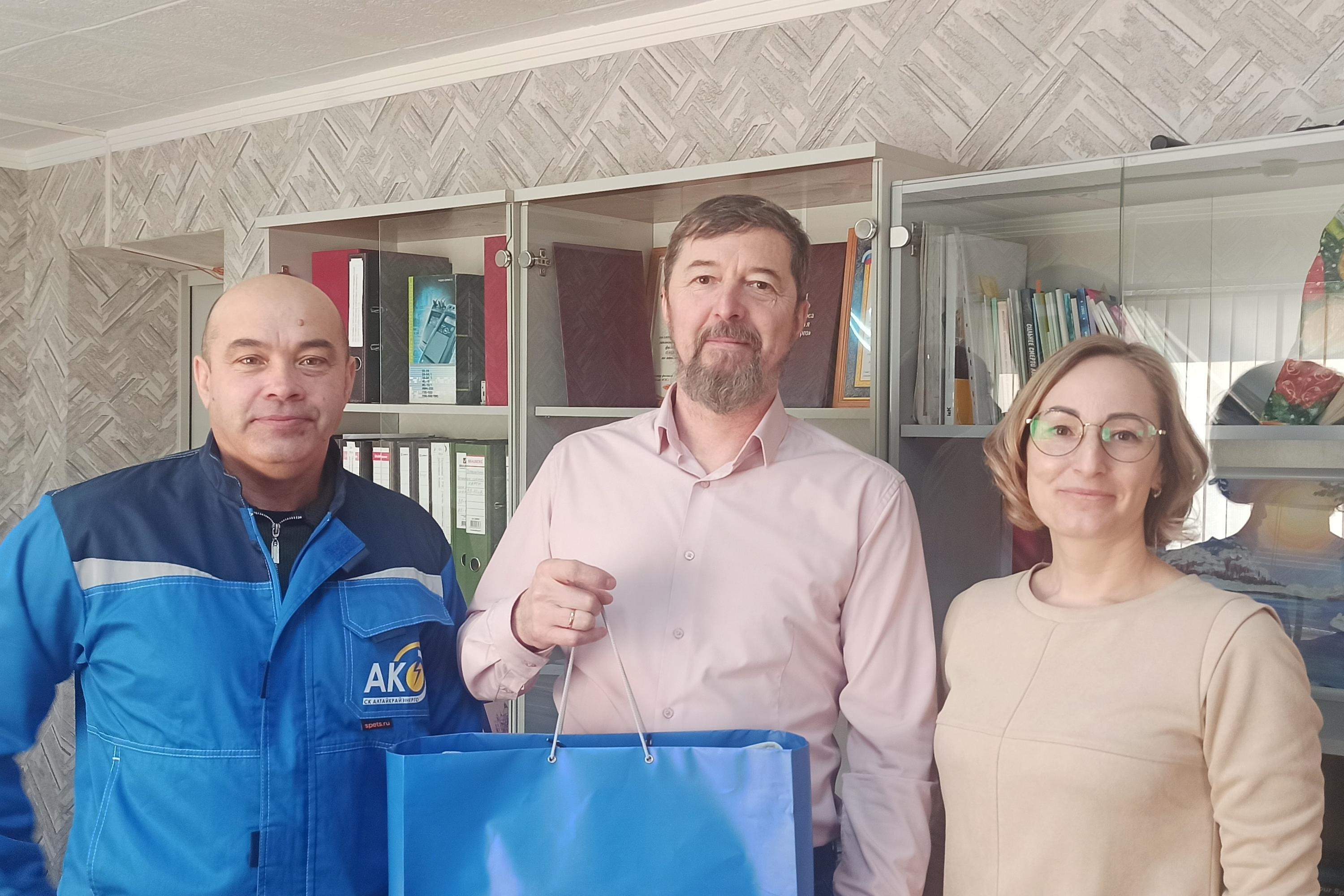 Очень важной стала возможность встретиться и лично поздравить Александра Ветрова (аппарат управления), Николая Волчкова (Каменские МЭС), Ивана Петрова (Белокурихинские МЭС) и Алексея Скокова (Змеиногорские МЭС) во время их отпуска.