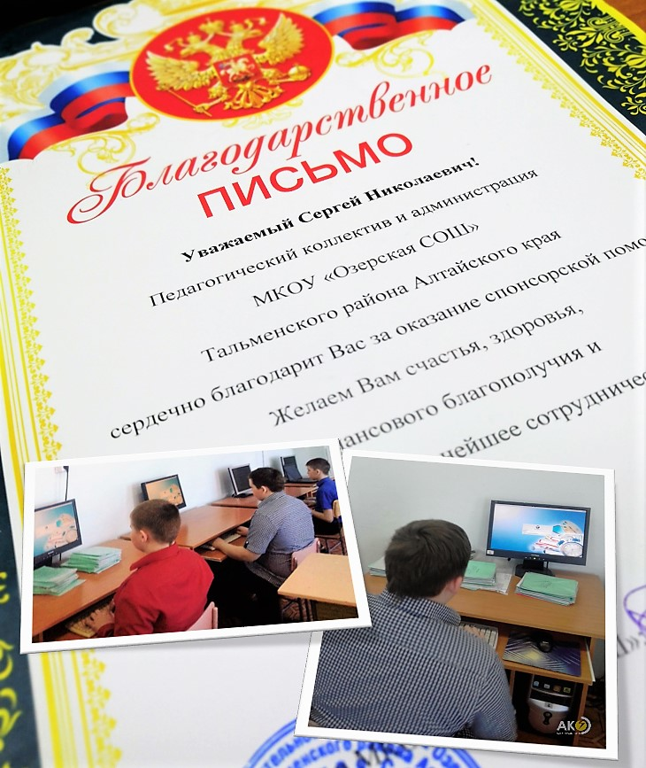 Социальная значимость учебного учреждения, достижения учащихся и педагогического коллектива не оставили равнодушным руководство компании «Алтайкрайэнерго». Десять компьютеров было укомплектовано и передано сельской школе. Сейчас все оборудование установлено и активно используется в образовательном процессе.